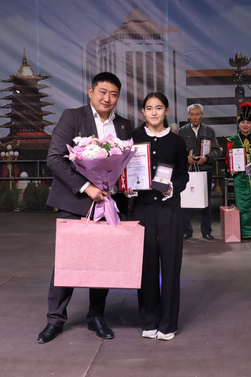 Затем прошла церемония награждения. Звание «Почетный гражданин города Элисты» было присвоено члену Общественной палаты РК Виктору Наранову. Начальник отдела аппарата ЭГС Байрта Летуева стала заслуженным работником местного самоуправления РК. Многие передовые в своих сферах работники калмыцкой столицы были награждены знаком «За заслуги перед городом Элистой». Также были поощрены лауреаты ежегодного городского конкурса «Человек года» в девяти номинациях. Замечу без ложной скромности, что среди них и автор этих строк. Самой юной лауреаткой стала ученица девятого класса, лицеистка Элина Халгаева, ставшая человеком года в номинации «Надежда города Элисты».