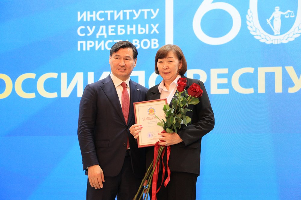 Со знаменательным юбилеем сотрудников и ветеранов ведомства поздравил глава республики Бату Хасиков. «Наряду с налоговыми и таможенными органами служба судебных приставов входит в тройку лидеров по пополнению бюджета страны и региона. Необходимо и дальше повышать результативность во всех направлениях, действуя при этом с уважением к каждому человеку, сохраняя твердость и принципиальность», - подчеркнул Бату Сергеевич. Отдельные слова признательности он адресовал ветеранам, которые стояли у истоков становления ведомства. Глава республики вручил благодарственные письма сотрудникам, чья работа является образцом профессионализма и преданности долгу.