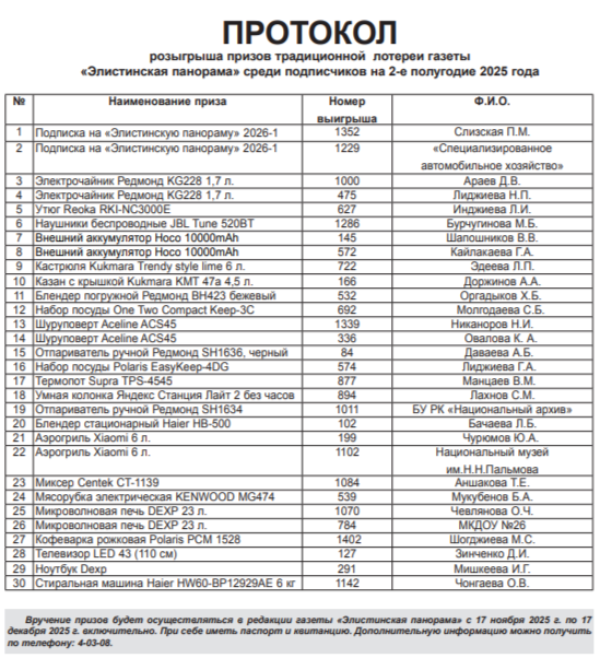 В нем приняли участие 1409 зарегистрированных подписчиков на второе полугодие 2025 года. В осеннем тираже, как и было заранее проанонсировано, были разыграны 30 призов - телевизор LED 43 (110 см), ноутбук Dexp, аэрогрили, микроволновые печи и многое другое. Главный приз – стиральная машина Haier! Но обо всем по порядку.