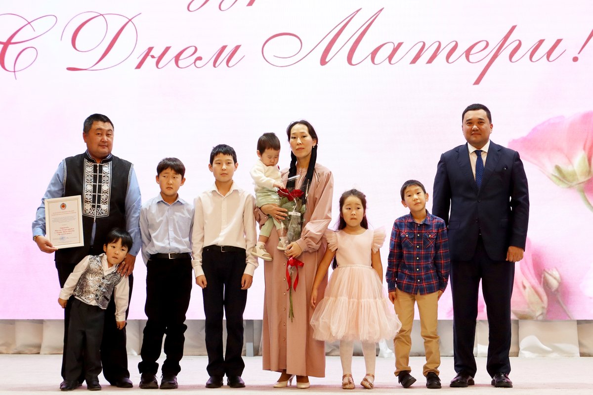 На торжественное мероприятие, посвященное Дню матери, были приглашены многодетные родители, внесшие значительный вклад в сохранение и укрепление семейных ценностей, мамы участников СВО, лауреаты всероссийских конкурсов «Семья года» и «Это у нас семейное», победители республиканских конкурсов. В числе почетных гостей на заседании присутствовал ветеран Великой Отечественной войны Петр Леонтьевич Леонтьев. Детский образцово-художественный коллектив «Веснушки» представил трогательную композицию «Мама, я люблю тебя». Атмосферу душевного праздника поддерживали красочная фотозона и выставка «Семьи счастливые моменты». Присутствующих тепло поздравил первый заместитель руководителя администрации главы РК Савар Тарбаев. Он зачитал приветственный адрес главы Калмыкии Бату Хасикова. В нем, в частности, говорится: «Каждая из вас - хранительница домашнего очага, источник тепла и заботы для своих детей и близких. Ваше терпение, мудрость и бесконечная любовь - это те столпы, на которых строится не только семья, но и наше общество. Вырастить честных, добросердечных, сильных детей - это великий труд и важная миссия». Особые слова благодарности и признательности в этот день были адресованы матерям участников специальной военной операции, воспитавшим отважных и смелых героев. В ходе праздничного мероприятия 11 семьям, в которых воспитываются пятеро и более детей, были вручены знаки отличия Республики Калмыкия «За заслуги в воспитании детей». Среди награжденных и элистинские семьи: Михаил и Кермен Тимашовы, Виктор и Делгер Ходеевы, Владимир и Ева Манджиевы, а также Антонина Озаева. Как рассказала в интервью «ЭП» Делгер Ходеева, в семье четыре дочери и сын. Старшая уже студентка, а самому младшему долгожданному сыночку три года. «Радует, что в стране и республике большое внимание уделяется поддержке семей. У всех наших детей разные увлечения, спорт, музыка, танцы. Очень любим путешествовать, получать новые впечатления. Самая большая награда для меня – забота и внимание моих детей», - отметила Делгер Сергеевна.