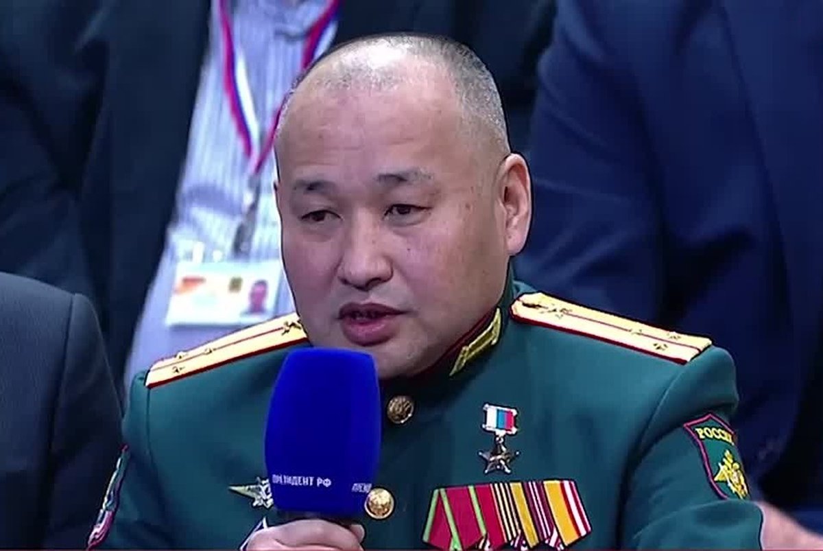 На вопрос ведущей рассказать о себе, наш земляк скромно ответил, что начинал с Соледара, прошел путь от простого штурмовика до командира штурмовой роты. Президент добавил: «Наран Алексеевич сейчас командует штурмовой ротой, у него в подчинении более 80 человек и он Герой Российской Федерации по заслугам».
