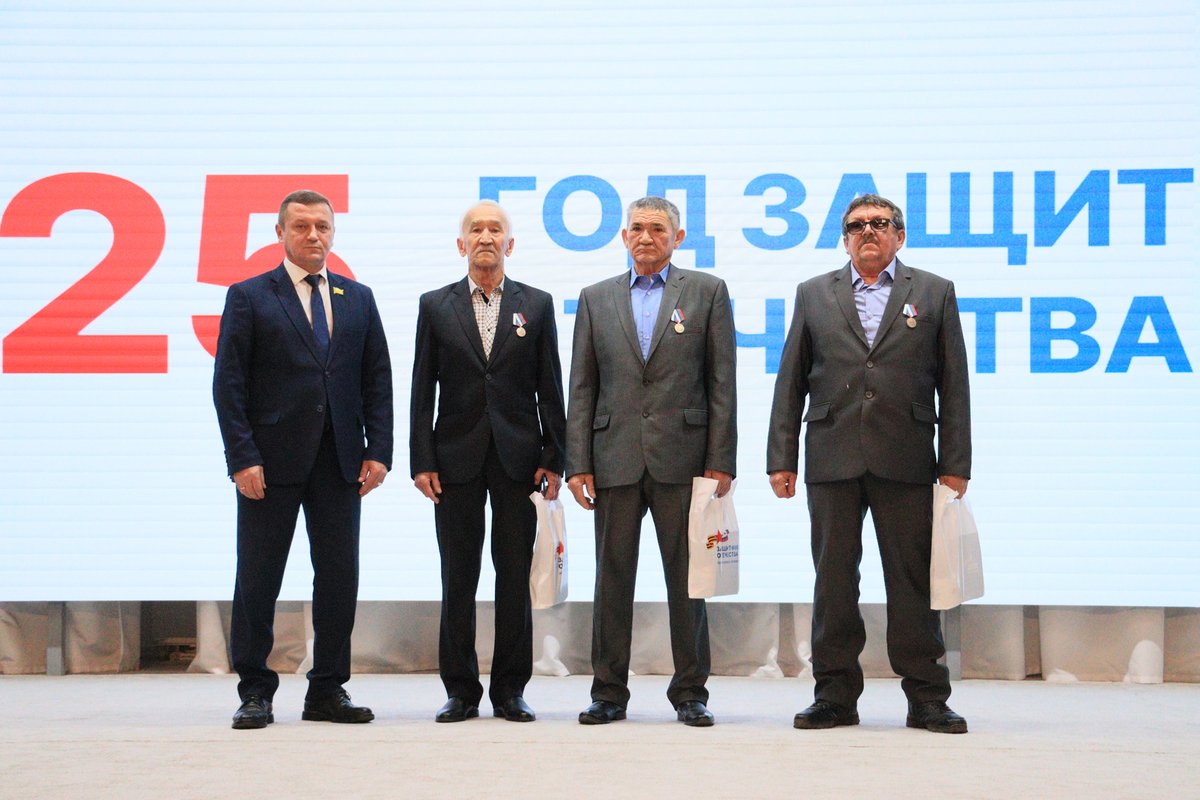 Председатель Народного Хурала (Парламента) РК Артем Михайлов вручил медали общественного признания «Отец солдата» Валерию Слинкину, Николаю Могилеву и Владимиру Настаеву.