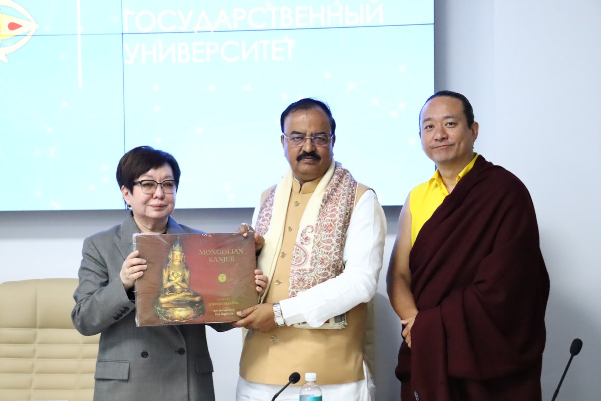 Делегация из Индии передала в дар Калмыцкому государственному университету им. Б. Б. Городовикова фундаментальный свод буддийских текстов Кангьюр (Ганджур) на монгольском языке.