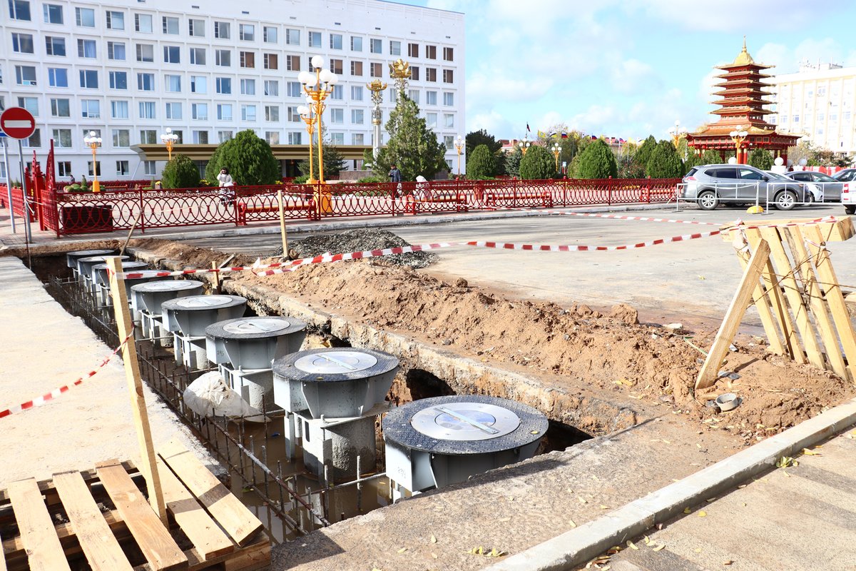 Как выяснилось, это туристско-информационный центр и баллард – вертикальное инженерное сооружение для ограничения или блокировки движения транспорта. Традиционно он представляет собой столб, который выдвигается из специальной шахты в земле. Такой тип сооружения строится на центральной площади степной столицы, надо полагать, для блокировки или регулирования въезда транспортных средств на территорию между первым корпусом КалмГУ, Национальным архивом и культурным комплексом «Пагода Семи дней». Это вопросы безопасности. Тем более, что здесь проводятся массовые мероприятия с большим количеством участников.