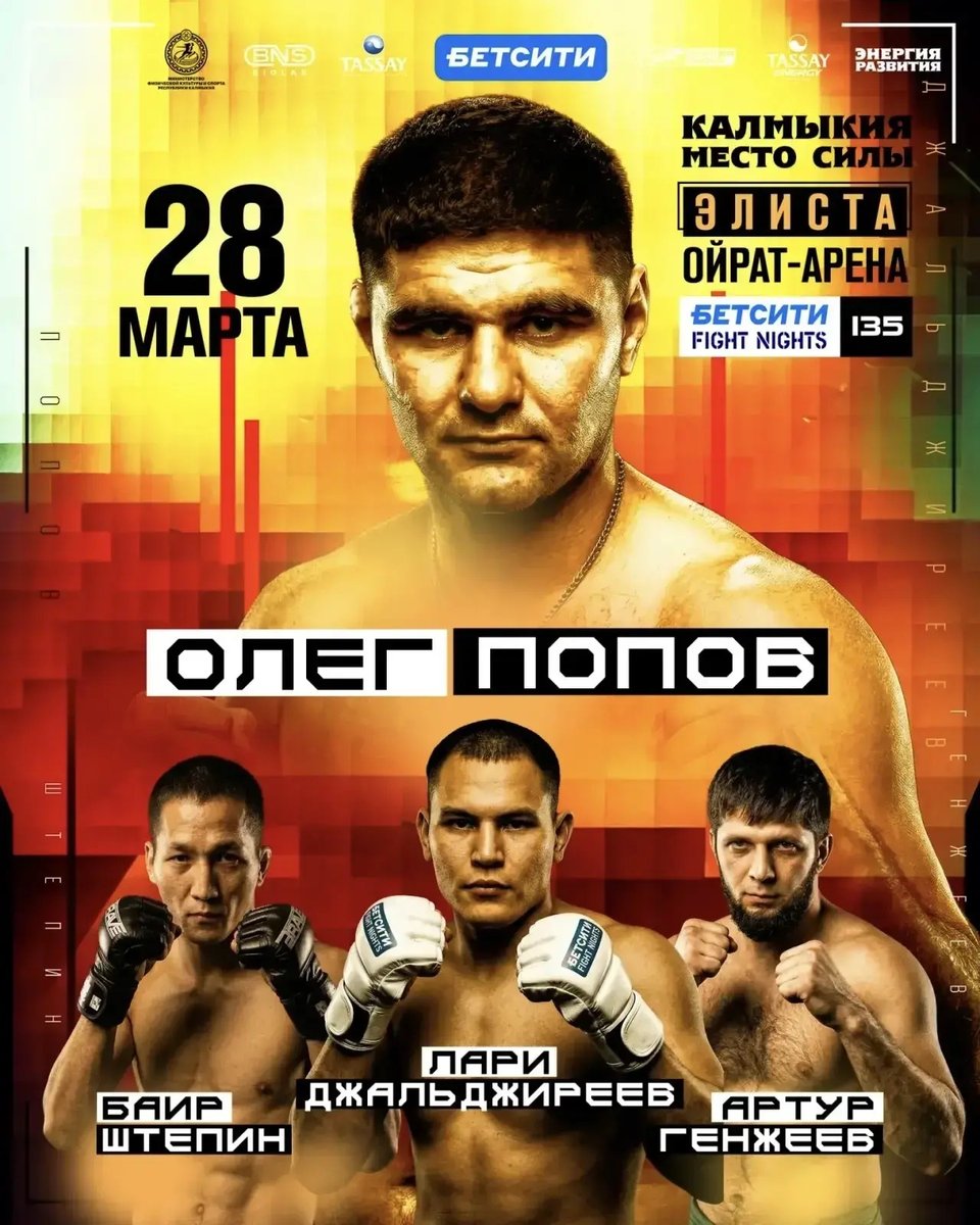 В главном поединке вечера сразится наш земляк, чемпион мира «PFL» в тяжелом весе – Олег Попов. Также в октагон выйдут и другие наши спортсмены – Артур Генжеев, Лари Джальджиреев и Баир Штепин. Уверен, они покажут достойный бой и прославят Калмыкию. А артисты представят нашу культуру и традиции всей стране.